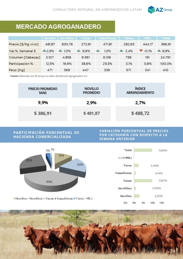 Y para cerrar, la nota la dieron las vacas, que reduciendo su participación en el mercado (39%), aumentaron 10% en precio y recuperaron mucho de lo perdido en las últimas semanas en términos corrientes.