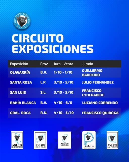 La raza líder sigue recorriendo el país con sus exposiciones, juras y remates que destacan lo mejor de la genética Angus. Te dejamos el listado de fechas y lugares para el mes de octubre.