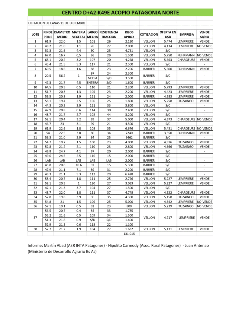 Centro de Acopio “Patagonia Norte”, se realizó la tercera licitación de lanas temp. 2025