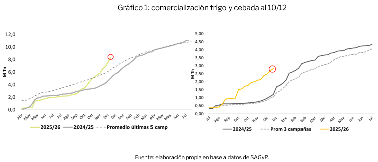 El Decreto 877/2025 tiene lugar en plena recolección de los cultivos de invierno, con una campaña 2025/26 que se estima récord absoluto para el caso del trigo argentino, mientras los precios internacionales se encuentran bajo la presión de una firme oferta mundial, con el conflicto sin resolución en el Mar Negro actuando de sostén para las cotizaciones.