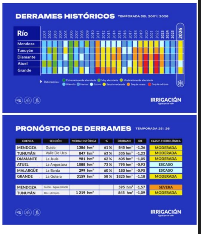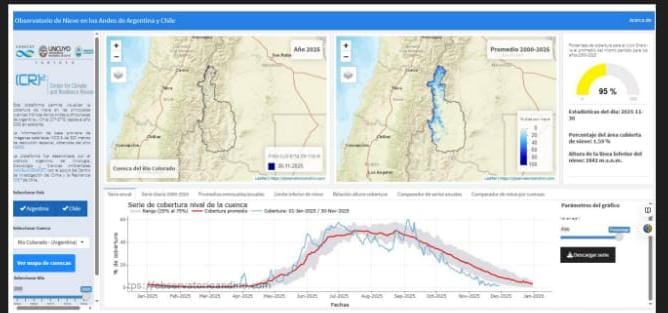 A través de su línea de comunicación la Asociación de Productores Rurales de Villarino Sur a enviado un comunicado con el Pronostico de derrame para el Rio Grande para el ciclo 2025/2026, el informe de cobertura nival en la Cuenca del Rio Colorado y el informe de cota embalse Casa de Piedra 2025.