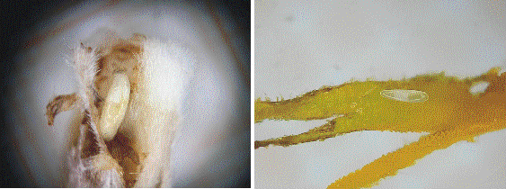 La pupa es cilíndrica, semejando un pequeño barril. Es de color amarillento o castaño claro. Se encuentra en el ovario de la flor afectada o sobre él coincidiendo con el periodo fenológico R6 (Figueruelo, 2010). De ellos nace el adulto que reinicia el ciclo en nuevas flores.