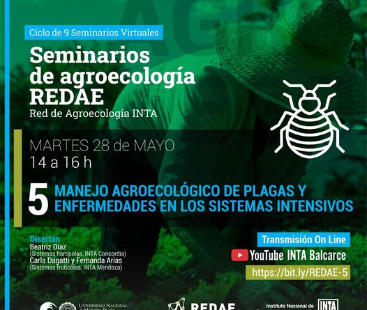 Read moreNueve (9) Seminarios destinados a productores/as, consumidores/as, técnicos/as, estudiantes y docentes. Seminario 5: Manejo Agroecológico de plagas y enfermedades en