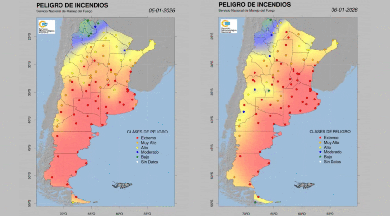 Read moreEl Servicio Nacional de Manejo del Fuego (SNMF) informó que este lunes 5 de enero al menos 16 provincias argentinas