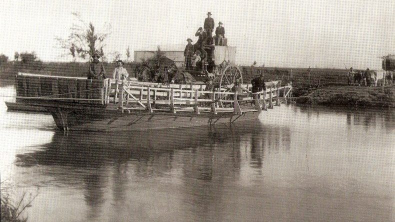 Arriba de esta balsa va un vehículo que fue esencial para la comunicación en la zona. Saben de que se trata?